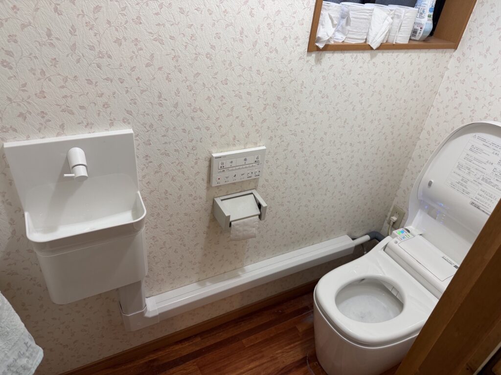 新型アラウーノがご希望でしたが、手洗いが無いので手洗い器も取り付けさせて頂きました。