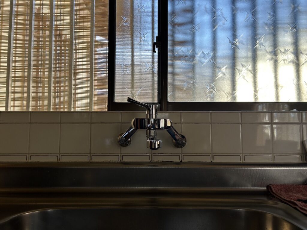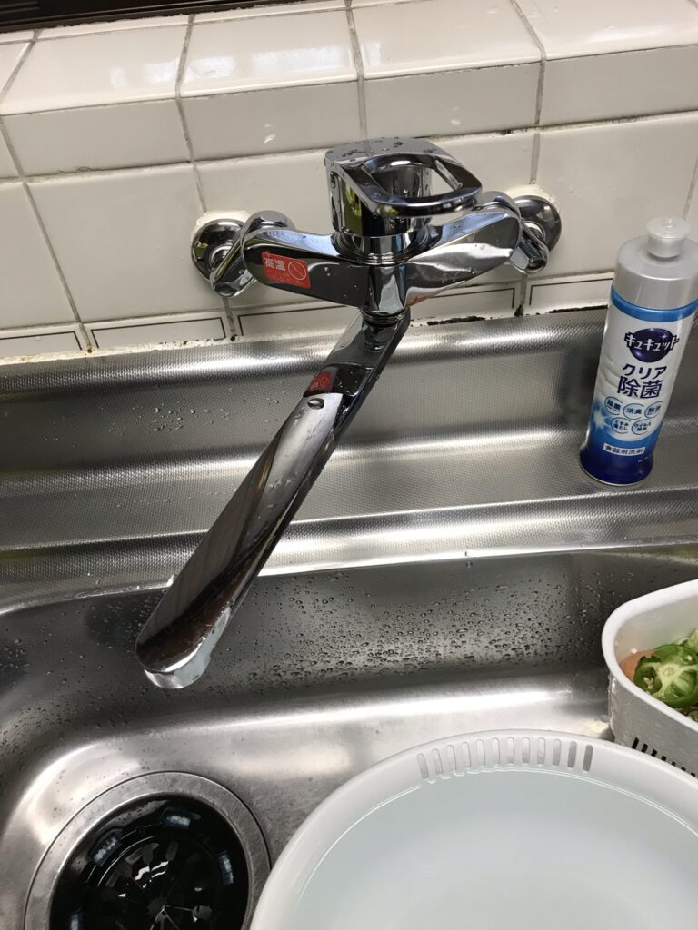 「水が止まらない、早く来て!」とお電話頂きましたので急行しました。水側のハンドルを閉めても全く止まらないので水栓金具の止水栓で止めました。